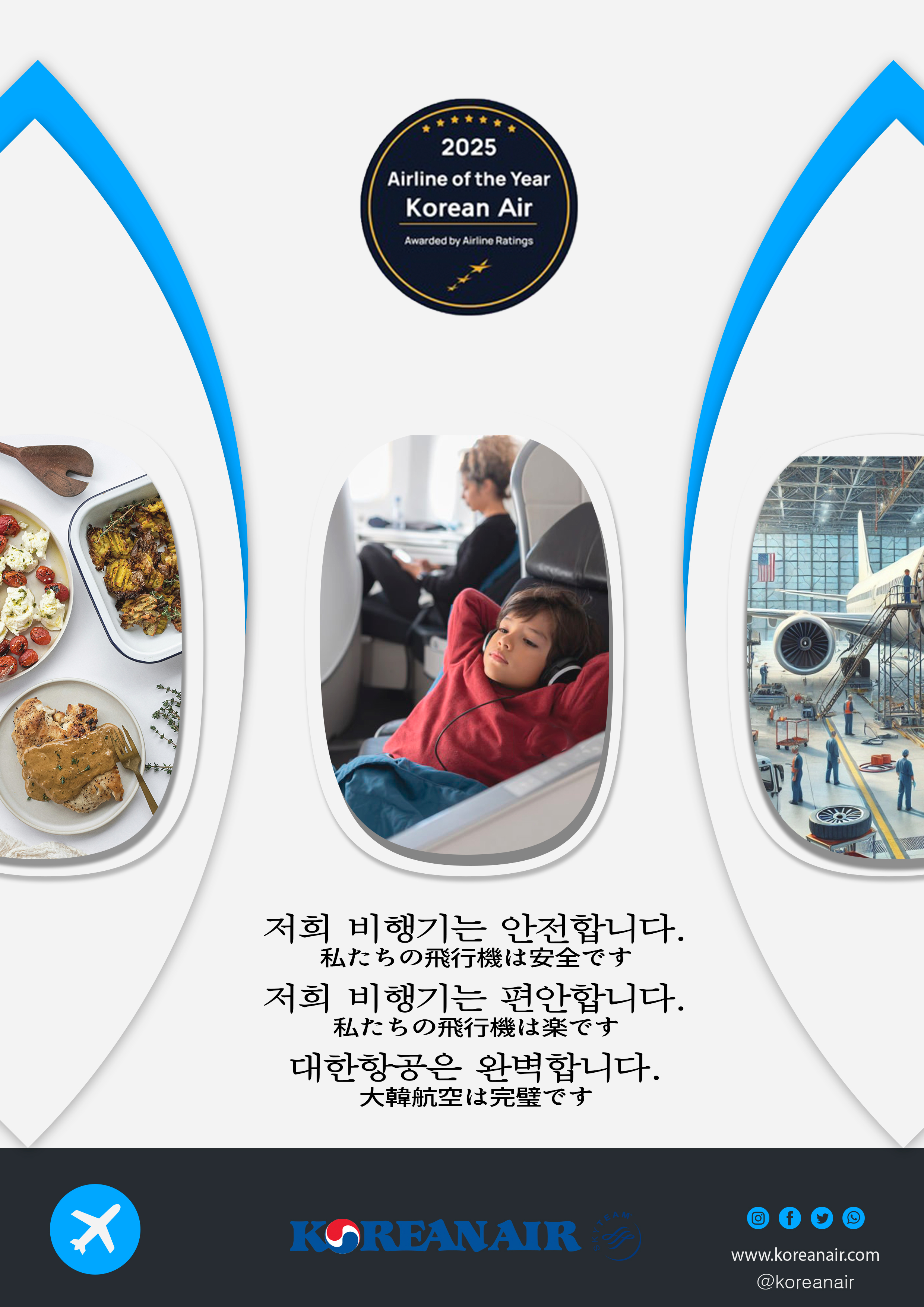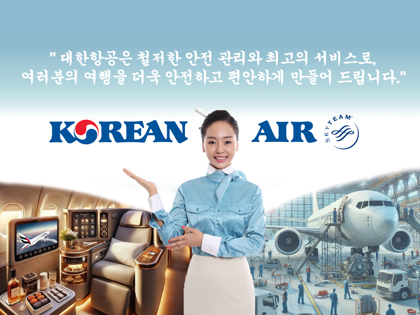 '최고의 안전과 서비스를 통한 고객만족'을 대한항공의 기업 핵심가치로 도출하여 핵심가치에 맞는 기업광고 이미지를 디자인 했습니다.