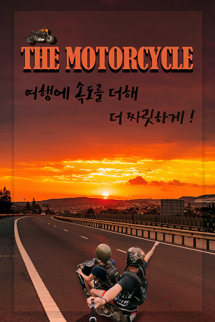 여려가지의 이미지를 보정하고 합성하여 '도로와 바이크만 있다면 시간과 장소의 구애를 받지 않고, 어디든 여행을 갈 수 있다.' 라는 의미를 전달할 수 있는 이미지를 만들었습니다.